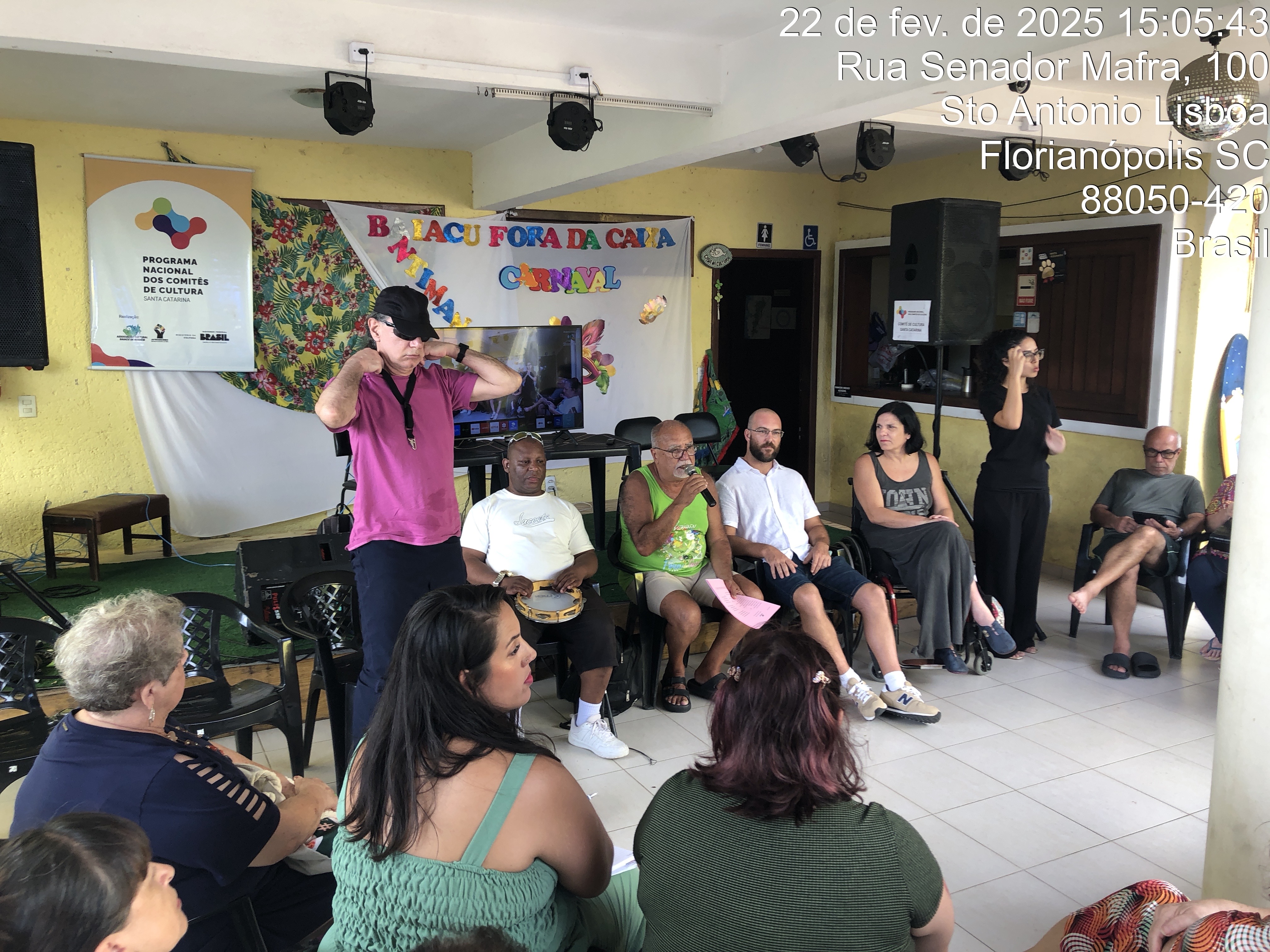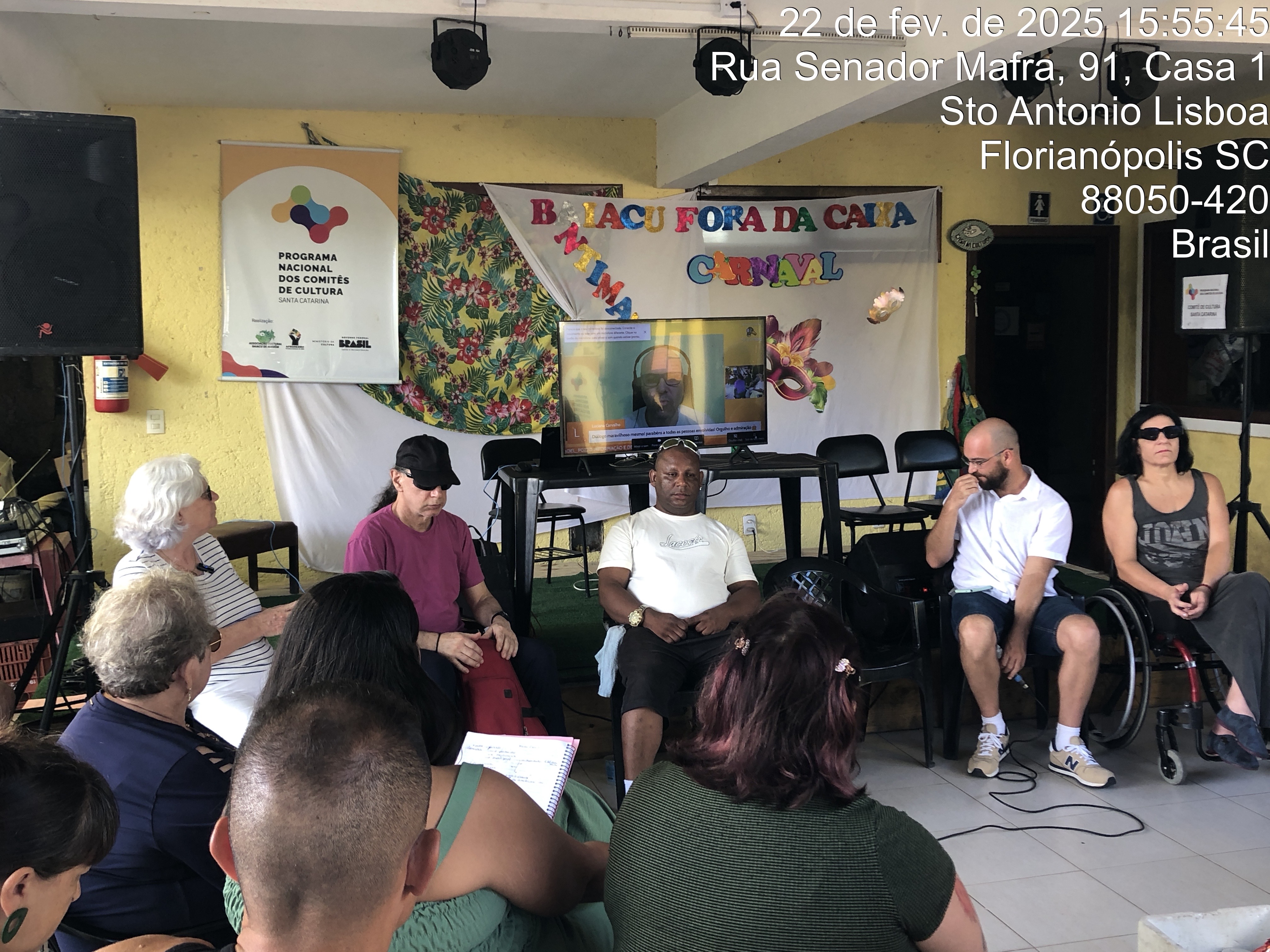 Este momento foi dedicado ao relato das experiências das associações sobre seus avanços e dificuldades operacionais enfrentadas pela ausência de qualquer aporte de ordem financeira ou logística na esfera federal nos últimos anos. No dia 22.2.2024, na sede da Associação Cultural Baiacu de Alguém, Roda de Conversa – mobilização de associações de pessoas com deficiência e usuários de saúde mental para inclusão nas políticas culturais. “Como tornar-se um ponto de cultura? Como participar de editais?”