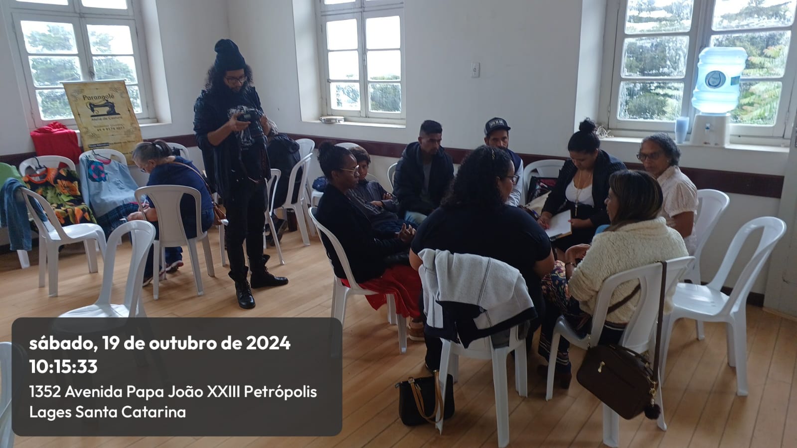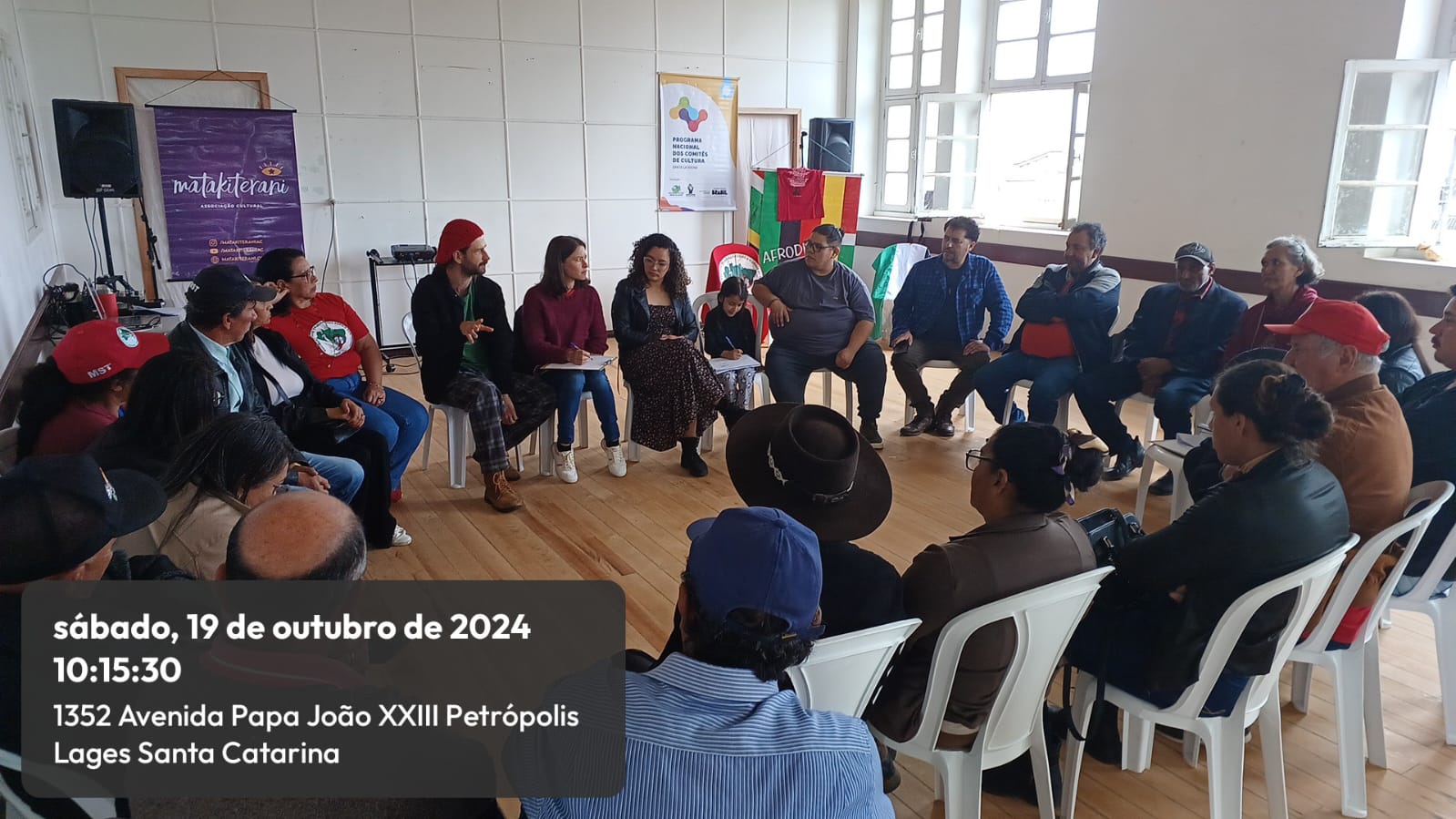 No dia 19 de outubro de 2024, a Caravana Cultural intitulada “Políticas Públicas Culturais e Direitos Sociais: desafios para o planalto catarinense ” foi realizada na Associação Cultural Matakiterani, em Lages – SC, com a participação de 53 pessoas. O evento teve início às 08:00h, com uma acolhida calorosa e um café da manhã para os participantes. A mística de abertura, conduzida pelos representantes do MST, criando um ambiente propício para as discussões do dia.