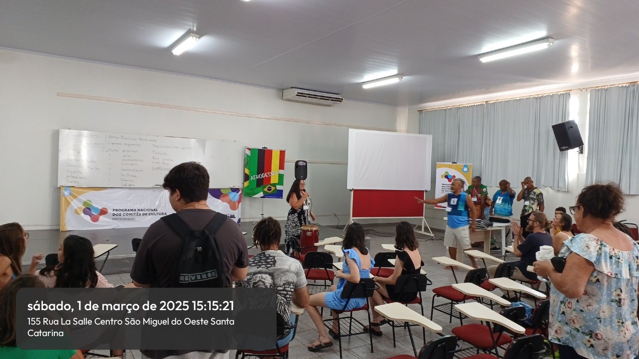 O segundo momento foi realizado através de roda de conversa conduzida por Valdemar Lourenço e Anderson Raasch e teve como objetivo aprofundar o processo de reconhecimento das diferentes manifestações culturais no território, enfatizando as culturas e populações invizibilizadas como a cultura de periferia, a cultura camponesa e a cultura LGBTQIAPN+.