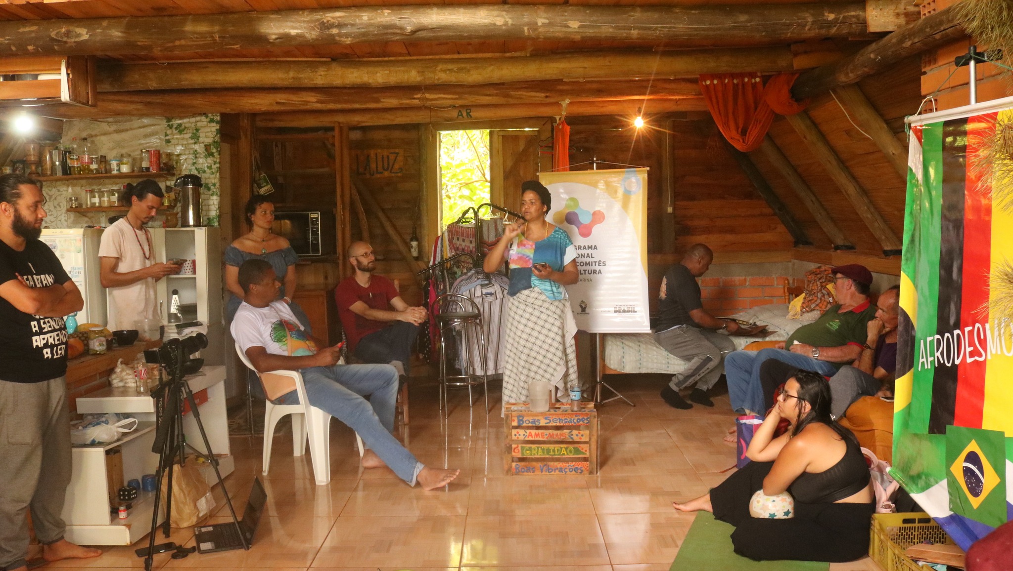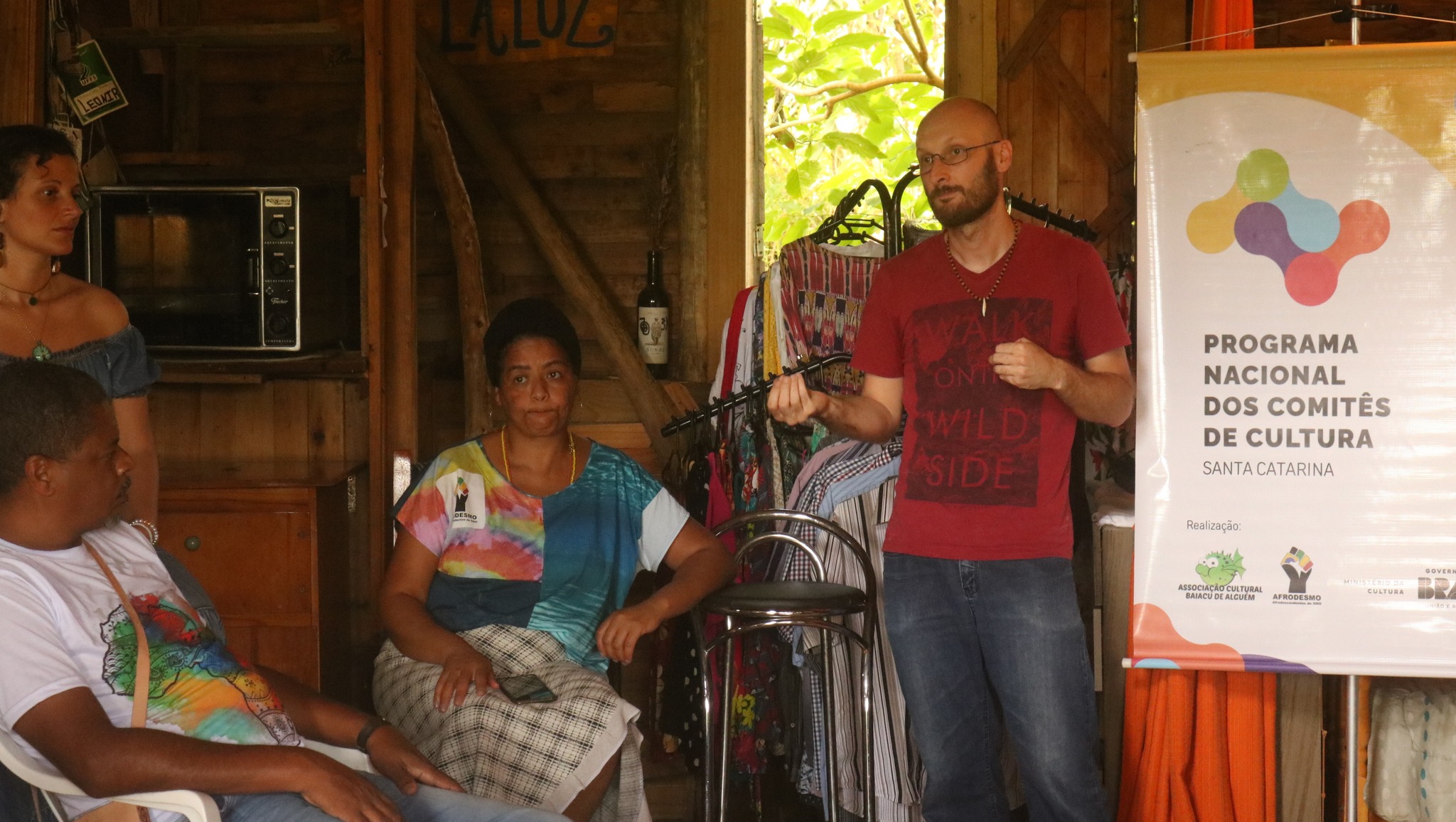 O Comitê de Cultura de Santa Catarina, por meio da equipe AFRODESMO (Associação Afrodescendente de São Miguel do Oeste), foi parceiro da atividade realizada em Dionísio Cerqueira, contemplada pela PNAB, no dia 20 de dezembro de 2024. A denominação do projeto se caracterizou como – “Itinerário Cultural da Terra: ideias para adiar o fim do mundo”, nas dependências do espaço: “Toca das sementes”, e teve como programação uma acolhida e debate no período da manhã, sobre: “desafios da cultura camponesa contemporânea”, com mediação do educador Abimael de Oliveira de Jesus, professor de história e mestre em Desenvolvimento Territorial para América Latina e Caribe, pela Escola Nacional Florestan Fernandes, onde foram discutidas questões importantes sobre a monocultura da cultura, como isso se relaciona com os processos capitalistas e os movimentos de hegemonia cultural financiados pelo sistema, além das questões de semiótica que permeiam o entendimento sobre a cultura nesse contexto e como a cultura camponesa perde seu espaço e a importância.